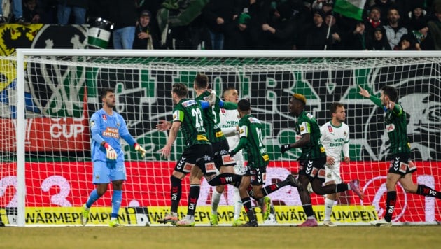 Erstmals schon nach nur 111 Sekunden! Da fiel das 1:0 für Ried, erzielt vom Ex-Rapidler Bajic nach einer haarsträubenden Fehlerkette: Ndzie zeigte im Mittelfeld wenig Anstalten, das verunglückte Zuspiel von Amane auszubügeln, Bajic düpierte am 16er den viel zu zaghaften Weixelbraun, schloss aus 13 Metern halbrechts flach zum 1:0 ab.